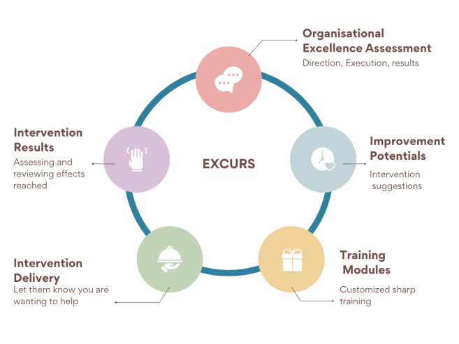 ExCurS wird ein einfach zu bedienendes, excellenzbasiertes Selbstbewertungsinstrument bereitstellen, das es einer Organisation ermöglicht, Verbesserungspotenziale als Grundlage für die Neugestaltung von Prozessen leicht zu identifizieren. Es ist geeignet für die Digitalisierung und die Revitalisierung von Geschäftsmodellen durch gezielte Trainings, insbesondere für die Erhöhung der Kompetenzen von Führungskräften und Mitarbeitern sowie zur Steigerung des Reifegrads des KMUs in Richtung Digitalisierung und nachhaltige Organisation.