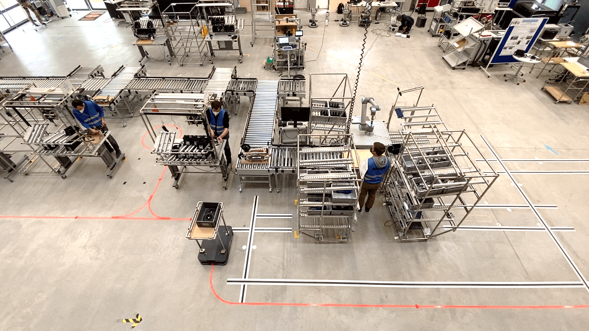 Ebenso wurden im Projektverlauf assoziierte Partner in das Projekt integriert. Diese stammten sowohl aus dem Anwenderbereich (z. B. Pharmalogistik, Spedition) als auch aus dem Technologiebereich (z. B. Steuerungs- und Automatisierungstechnik, Greifsysteme sowie Spanntechnik für Roboter und Produktionsmaschinen). Die Partner aus dem Anwenderbereich stellten sicher, dass die zu entwickelnden logistischen Prozesse industriellen Anforderungen genügen und realistischen Indikatoren folgen. Die Technologiepartner wiederum stellten sicher, dass die eingesetzten und weiterentwickelten Hard- und Softwaretechnologien industriell mit den entsprechenden Schnittstellen eingesetzt werden können. Zum Abschluss der ersten Förderphase wurde im Werk150 ein durchgängig integriertes Gesamtszenario (digital/physisch) entwickelt und umgesetzt und anschließend Besuchern aus Industrie, Forschung und Lehre demonstriert. Darin wurden die wesentlichen Entwicklungen der ersten Förderperiode zur Schaffung eines modularen Baukastens, bestehend aus Dienstleistungen, Tools und Komponenten, aufgegriffen.